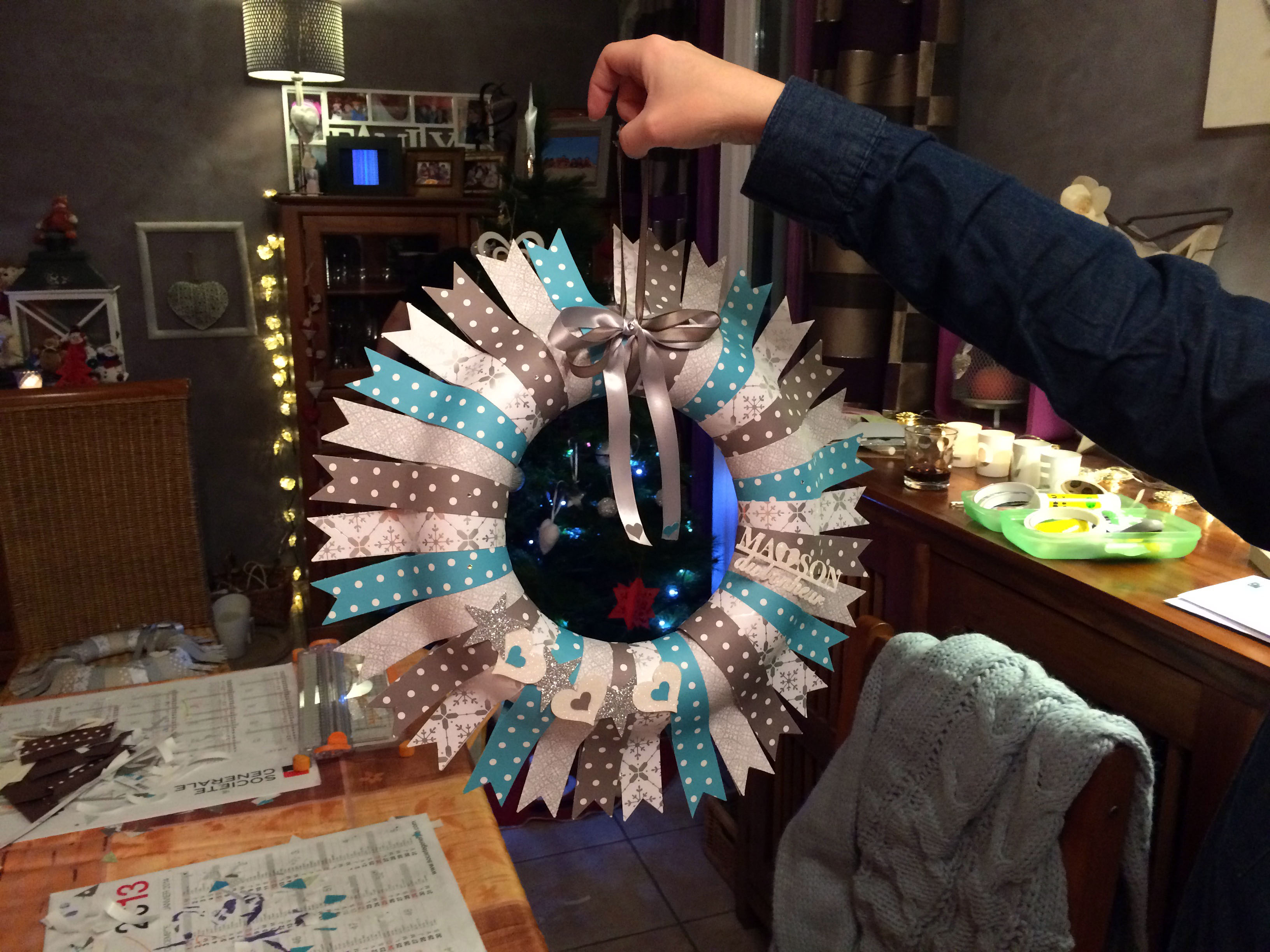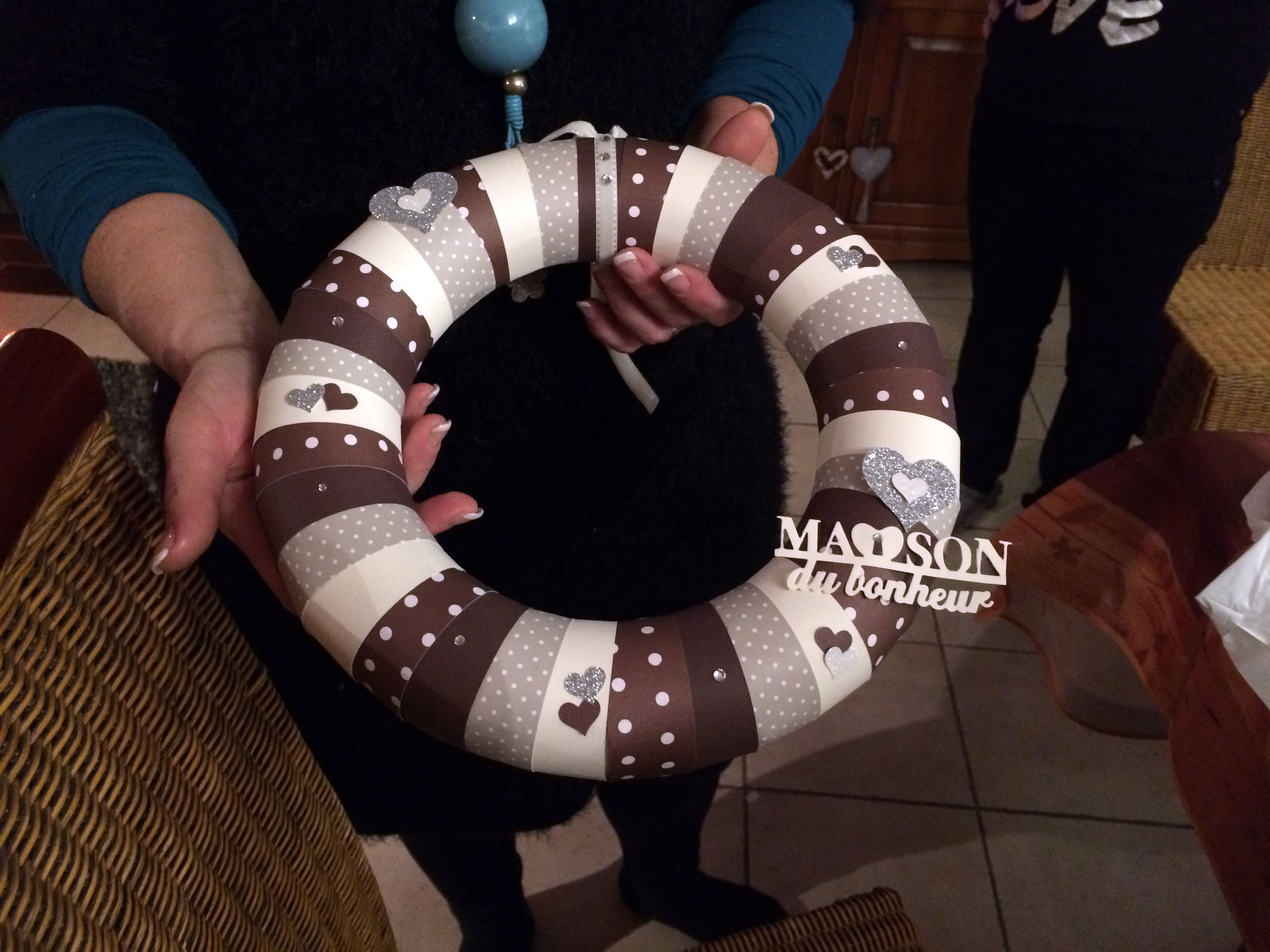 Aujourd’hui, je vous montre le projet que j’ai réalisé, mi décembre, chez Christelle à sa demande: une couronne Home déco.