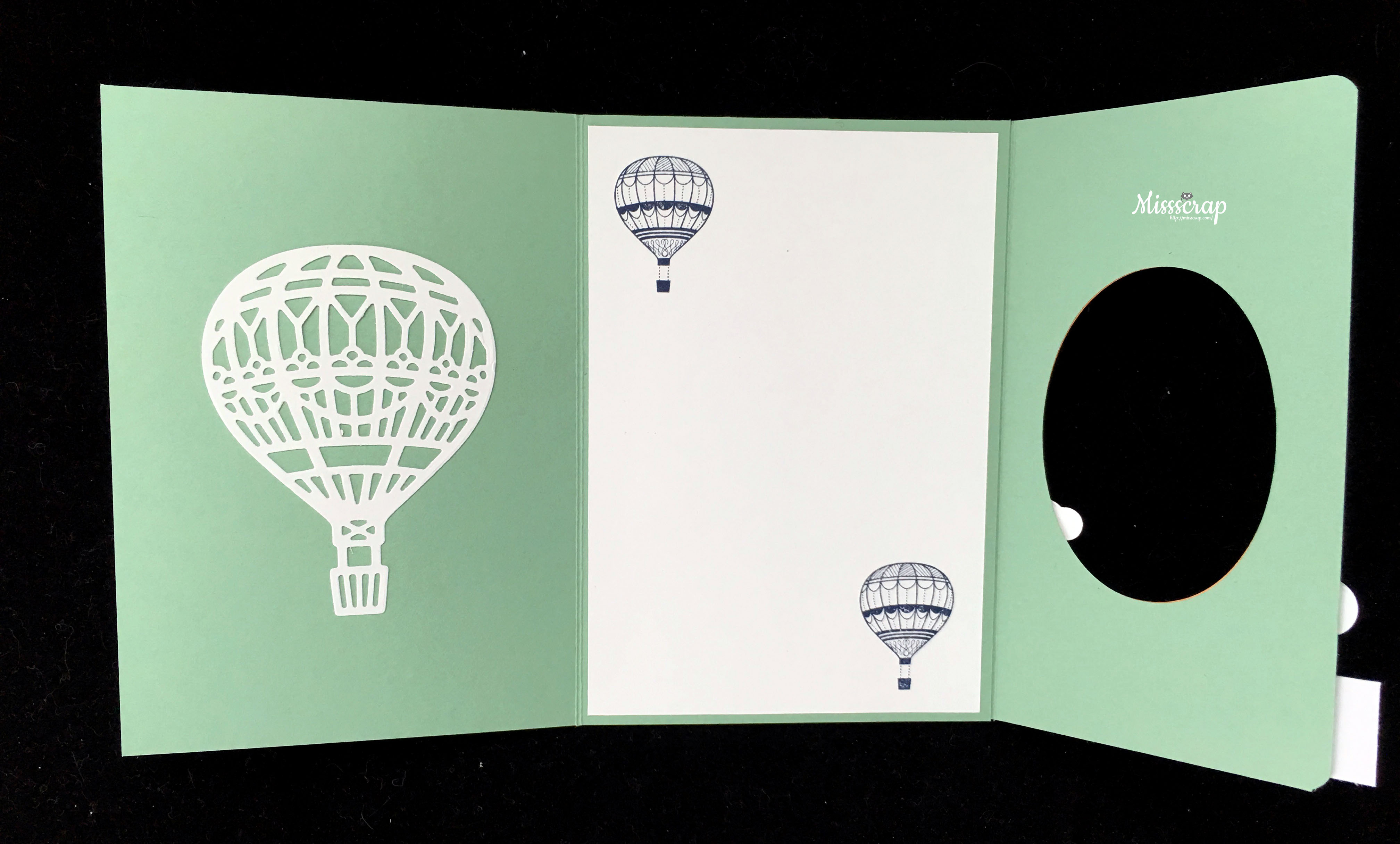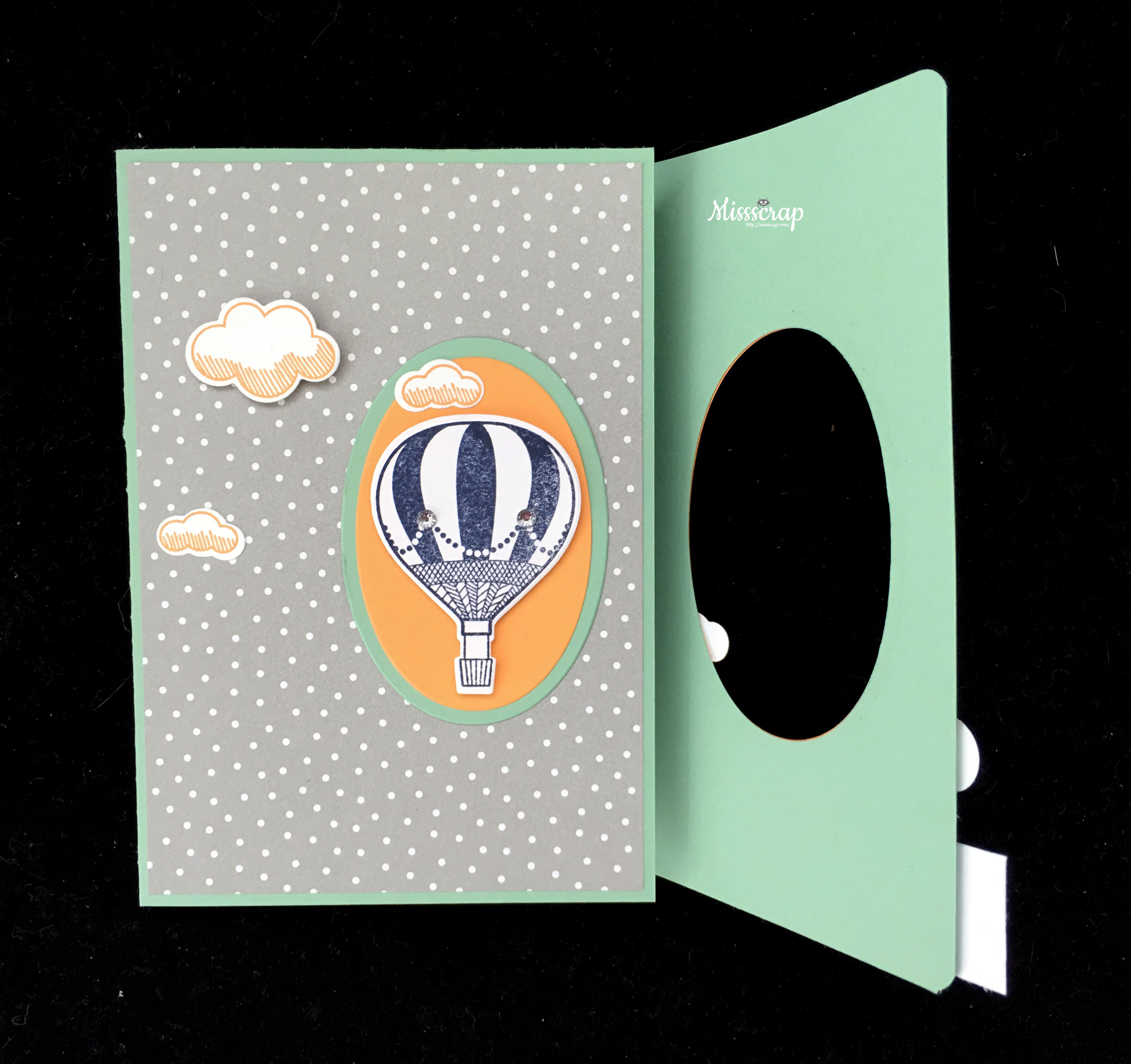 Et la montgolfière reste visible quand on ouvre la carte: c’est l’effet « peek-a-boo ».