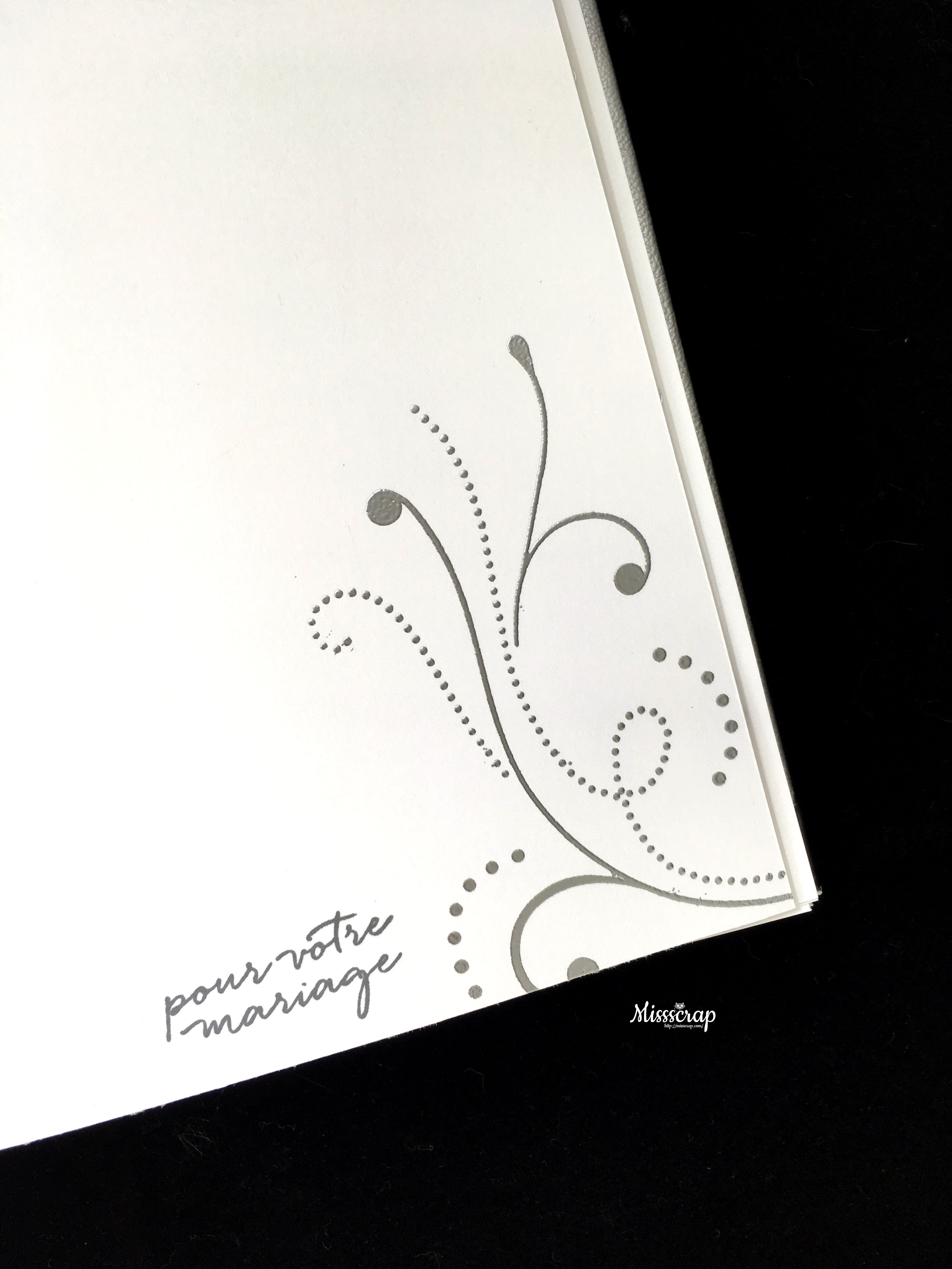 Virginia m’avait demandé en début d’année de réaliser les faire-parts du mariage de son frère. le thème était argent – blanc. Comme il y avait un nombre raisonnable de faire-parts à préparer, je me suis amusée à leur faire de beaux faire parts avec pas mal de découpes à la big shot.