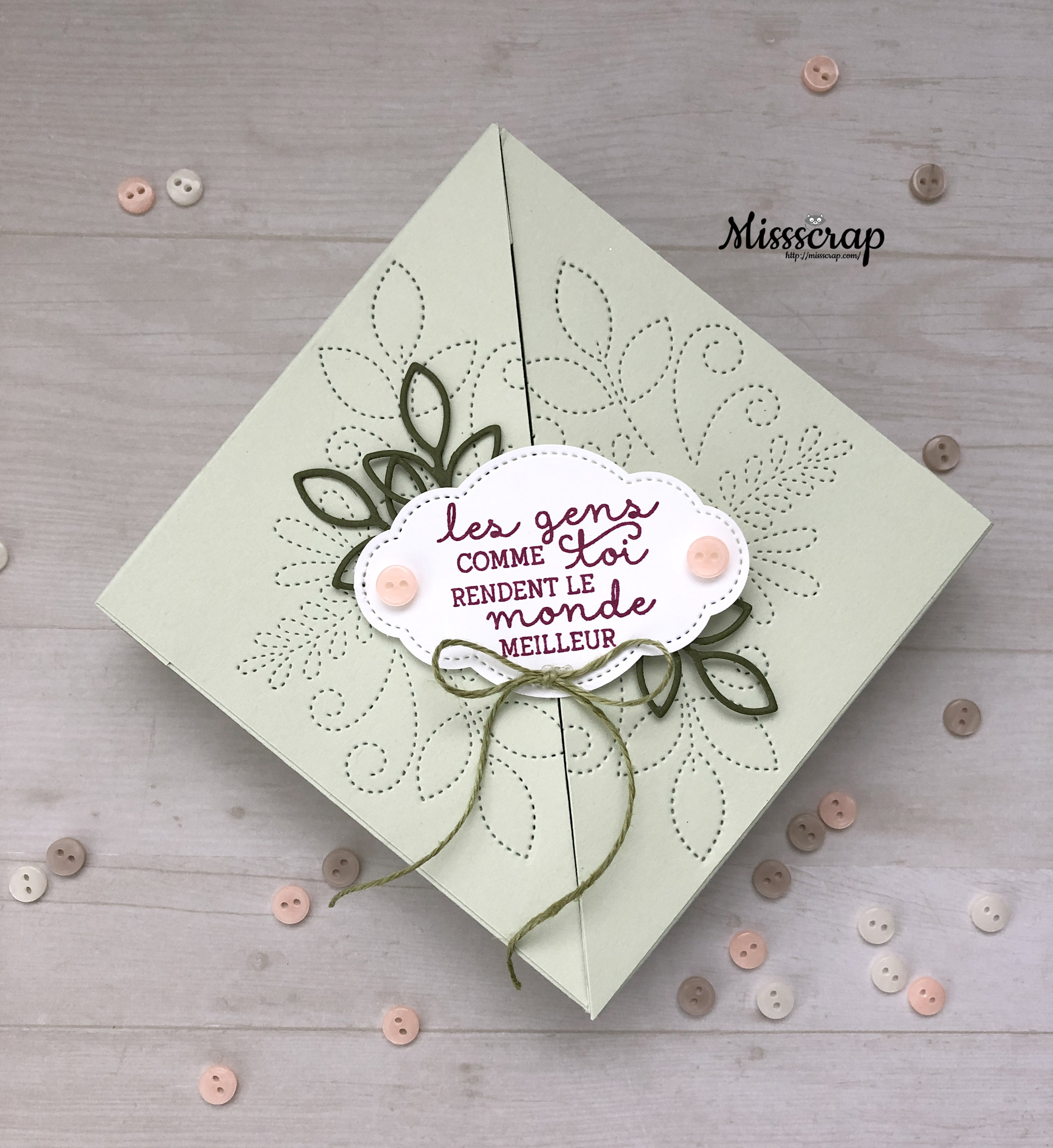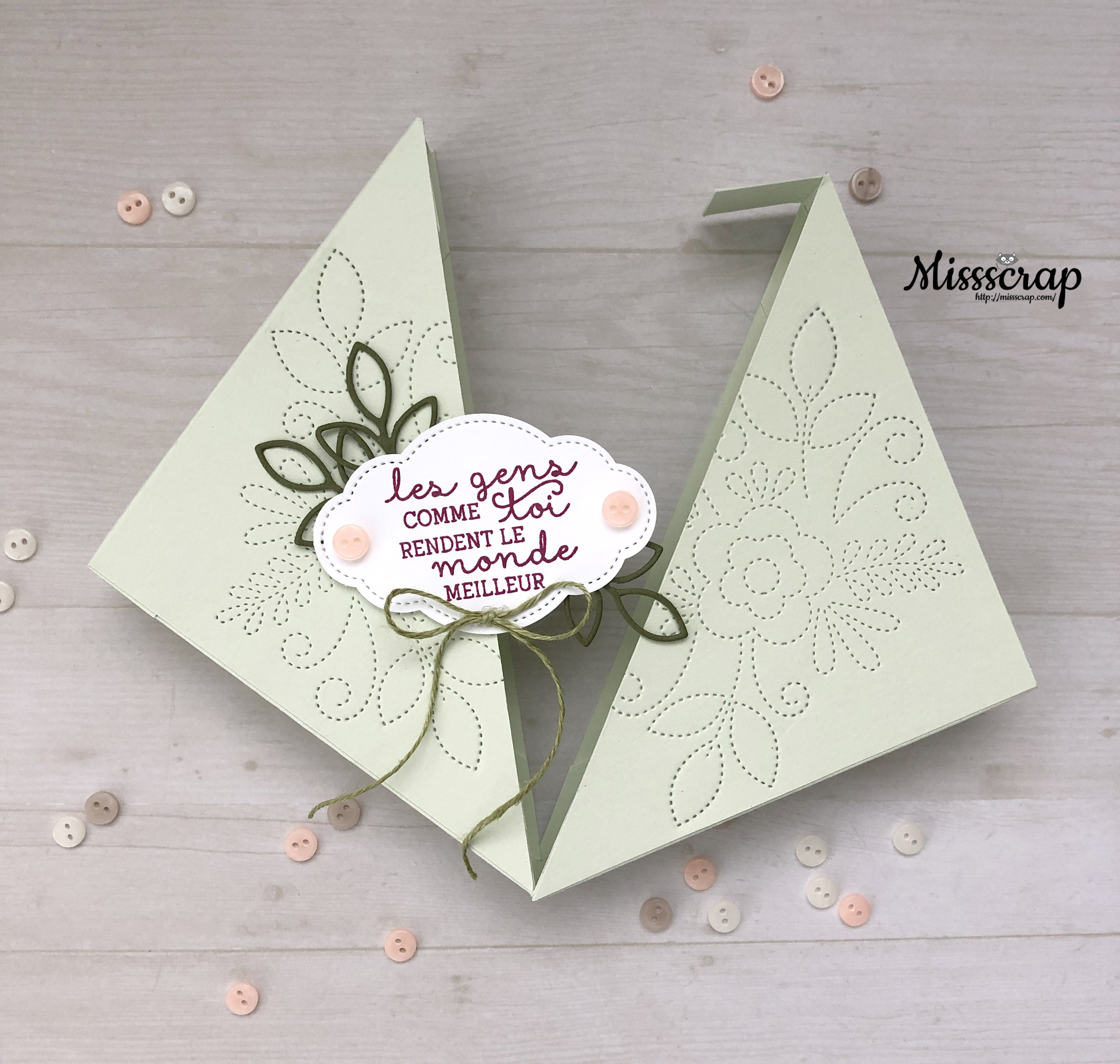 As promised, we meet today for the tutorial of the second make and take that I proposed during my open house. this is the tutorial of the box with the opening in triangle.