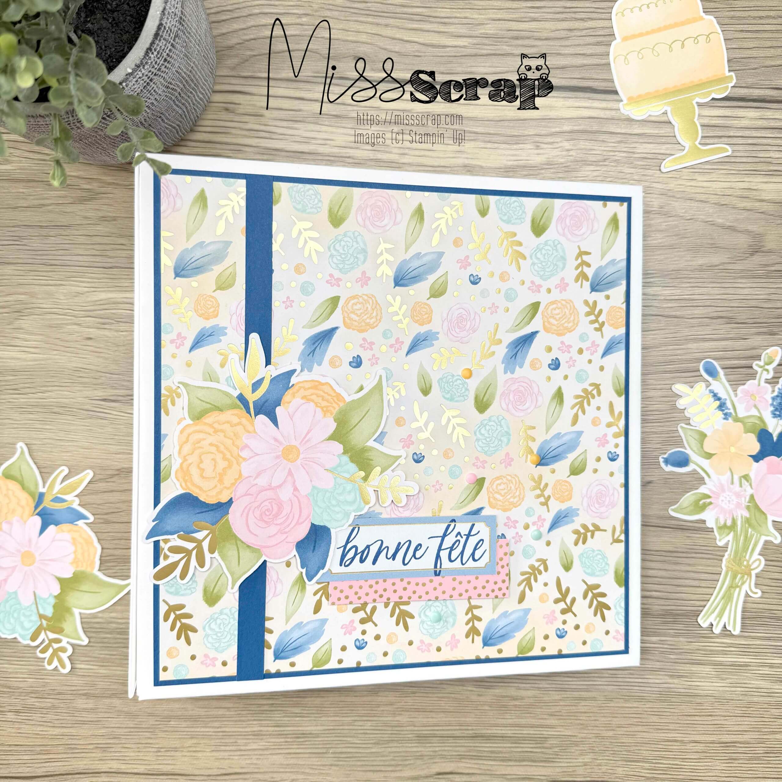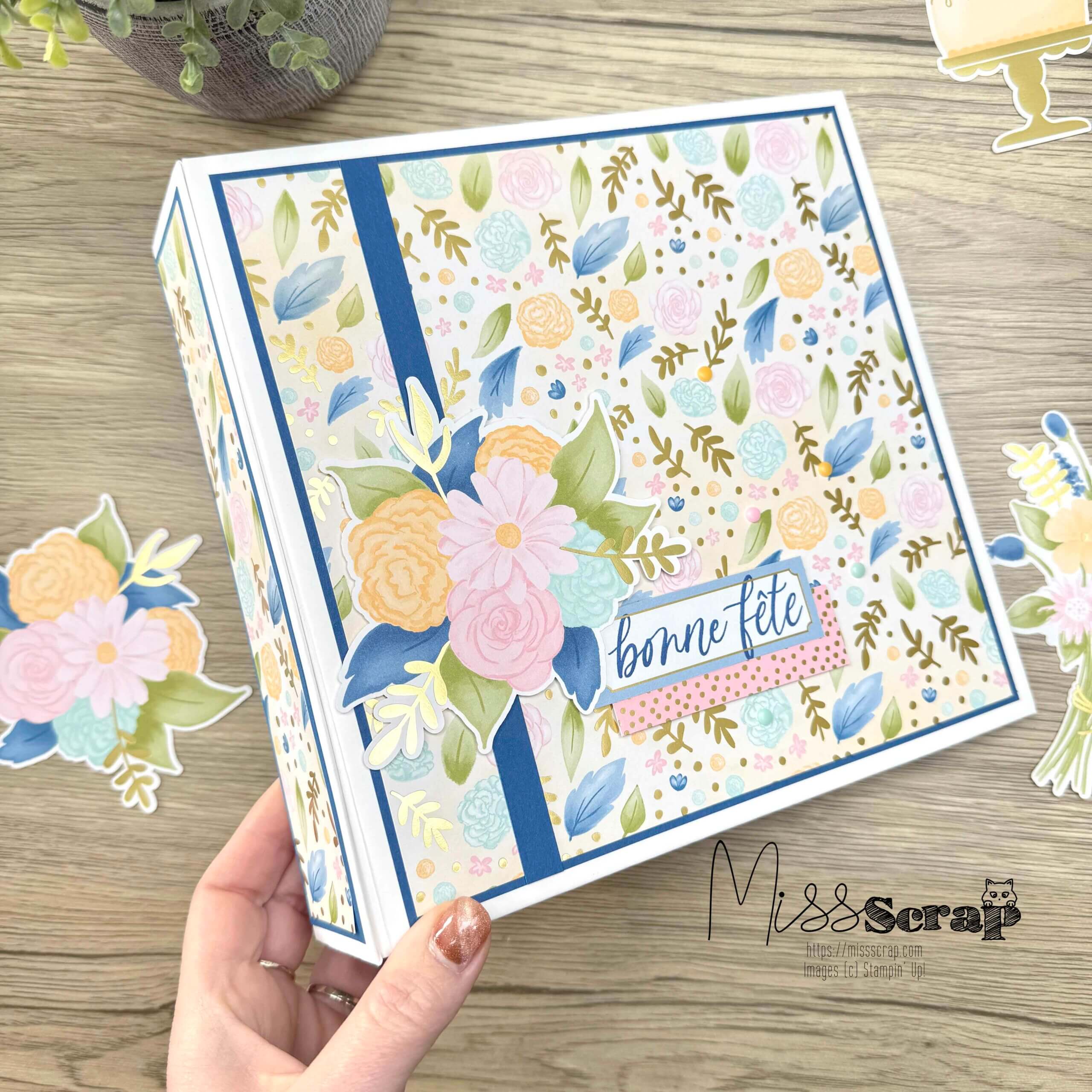 Il s’agit d’un album au format 21 x 21 cm, avec une épaisseur de 5cm; qui a été proposé au printemps, avec la collection « Anniversaire aux fleurs sauvages » de chez Stampin’ Up!