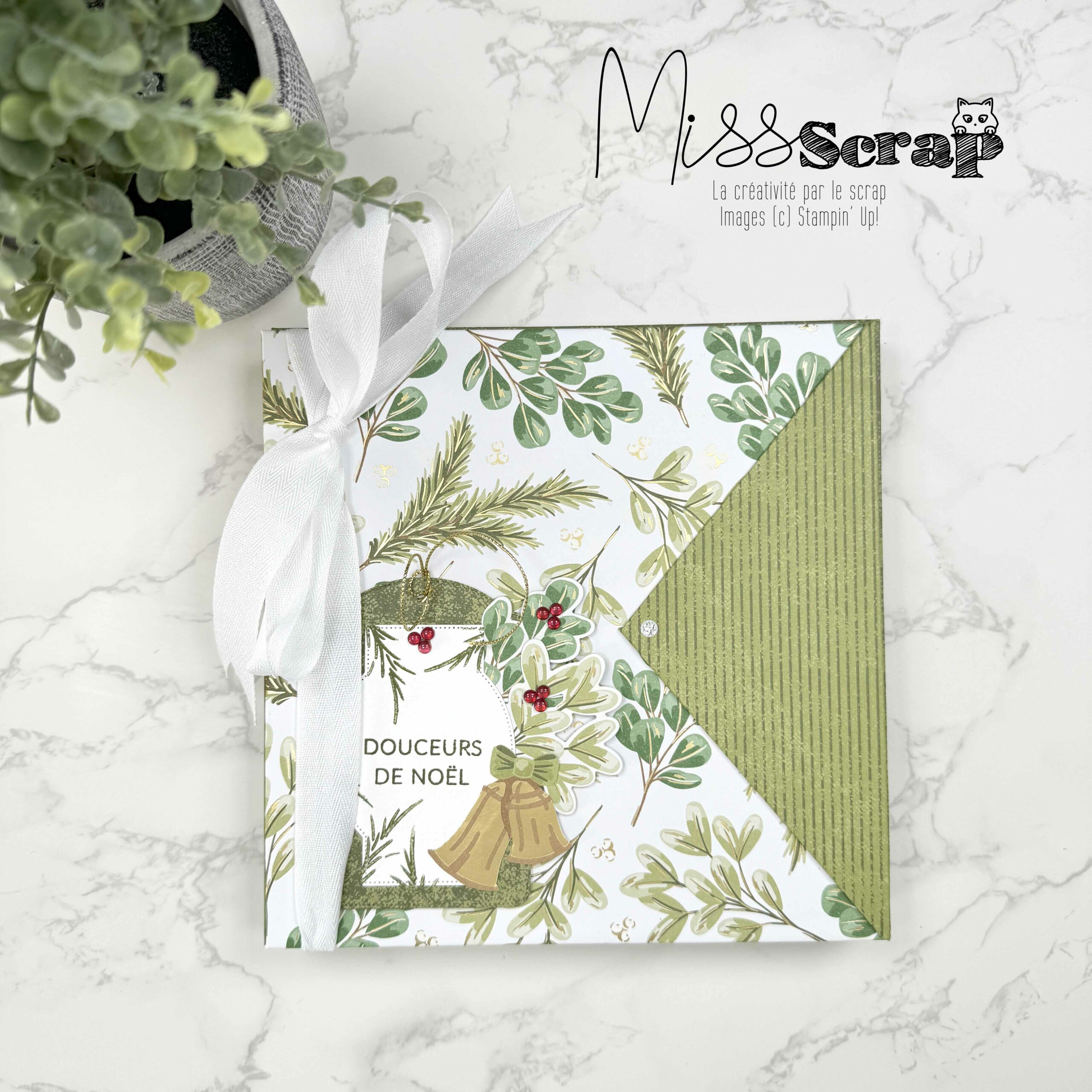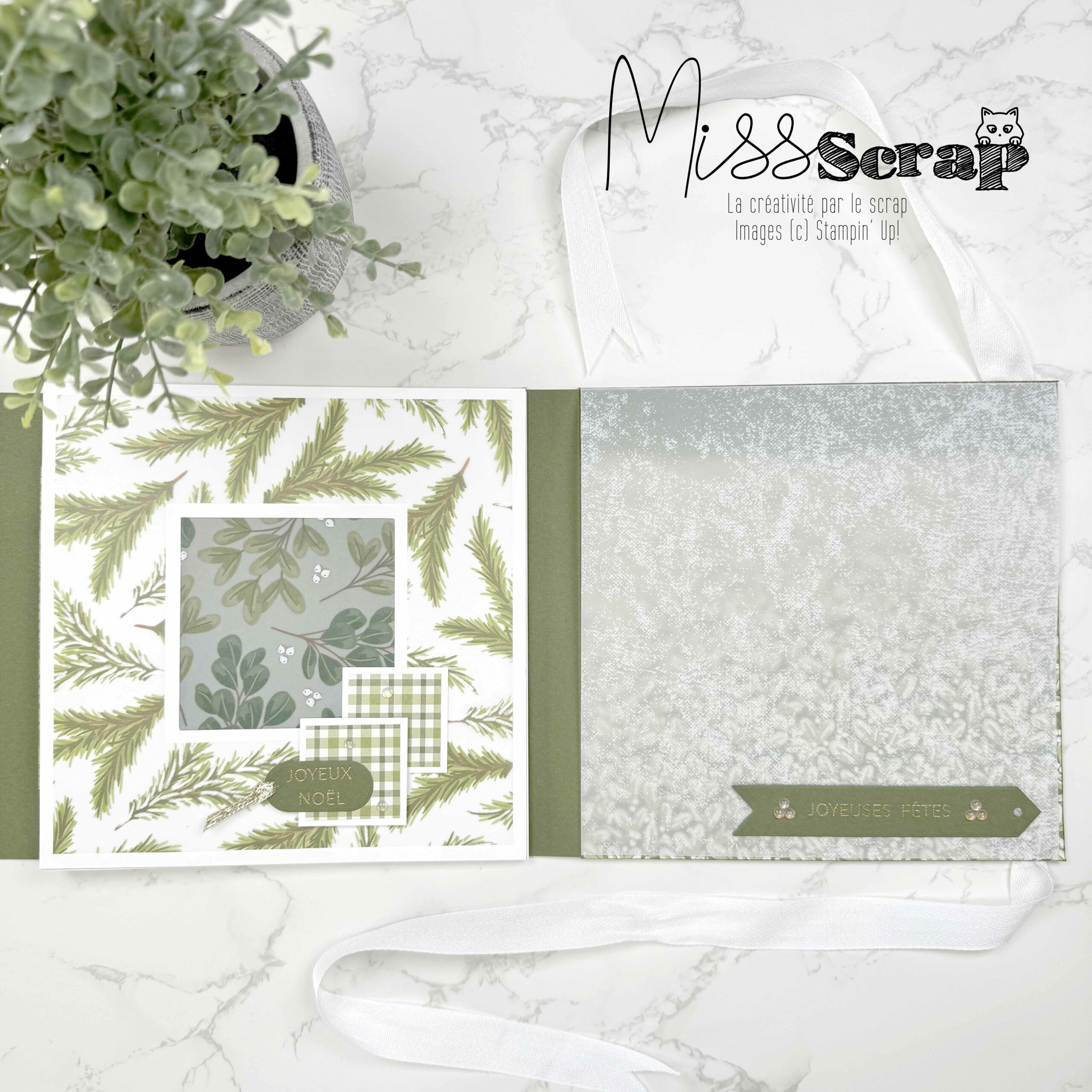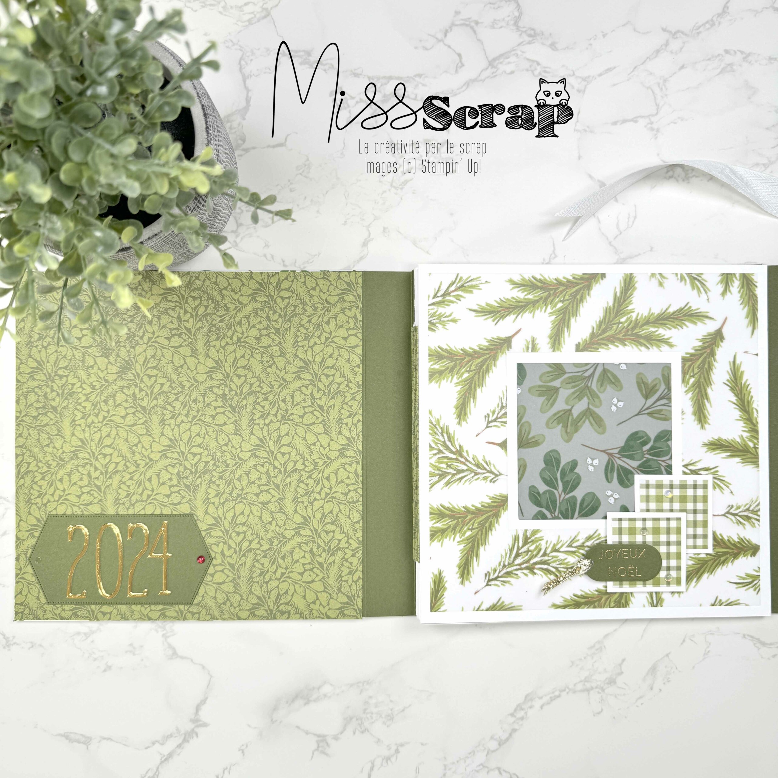 Il s’agit d’un album au format 18 x 18 cm, qui a été proposé en octobre 2024, avec la collection “de vert et d’or” de chez Stampin’ Up!