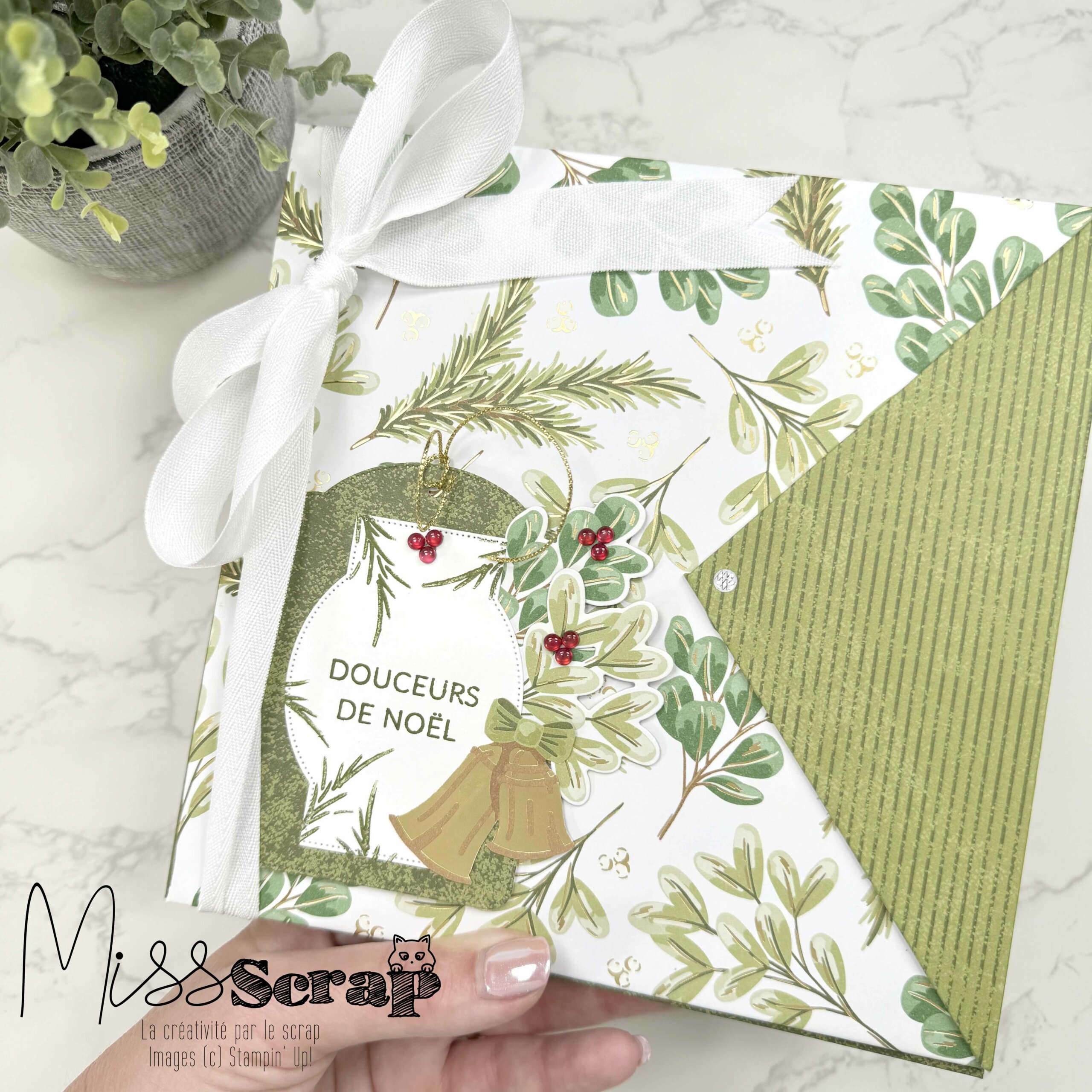 Il s’agit d’un album au format 18 x 18 cm qui a été proposé à l’automne 2024, avec la collection « de vert et d’or » de chez Stampin’ Up!