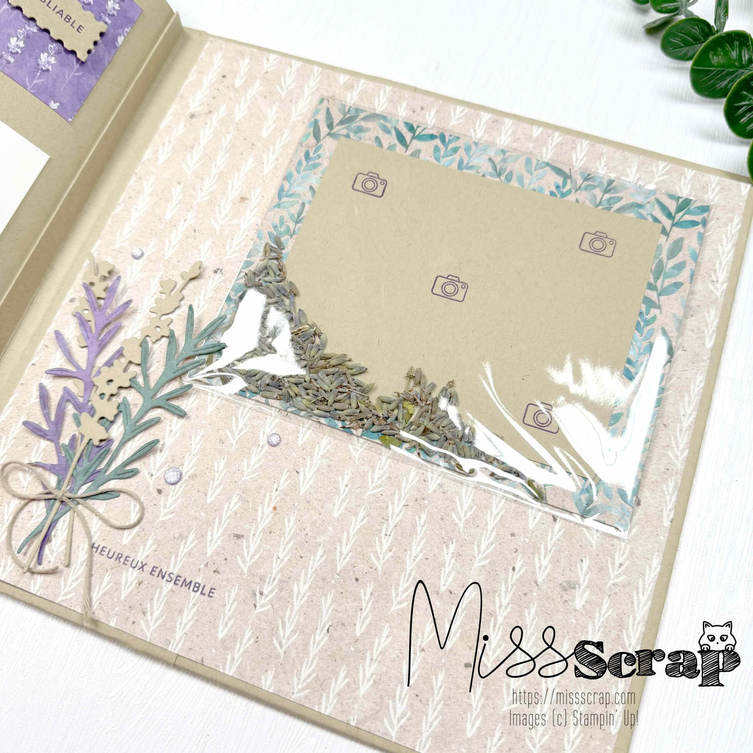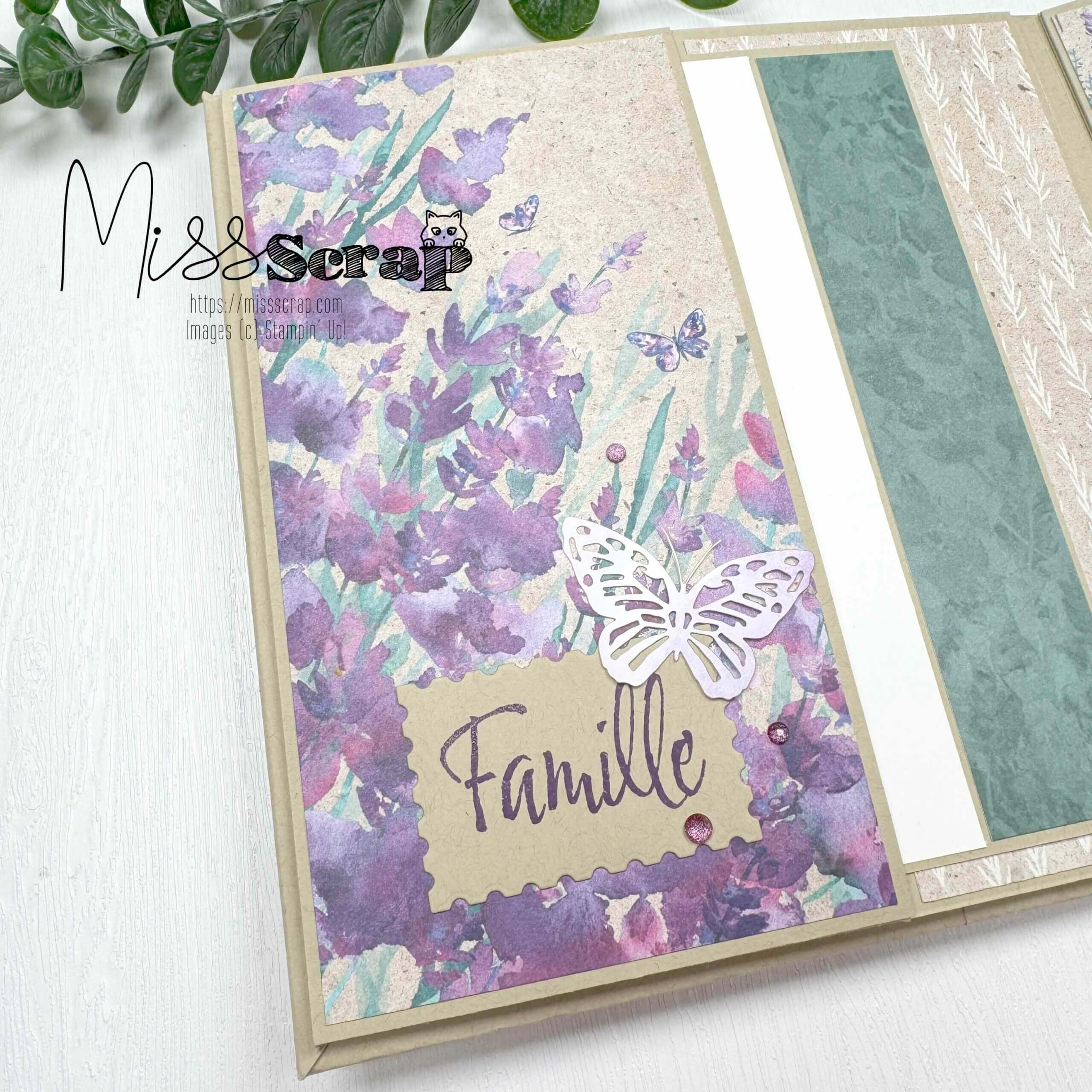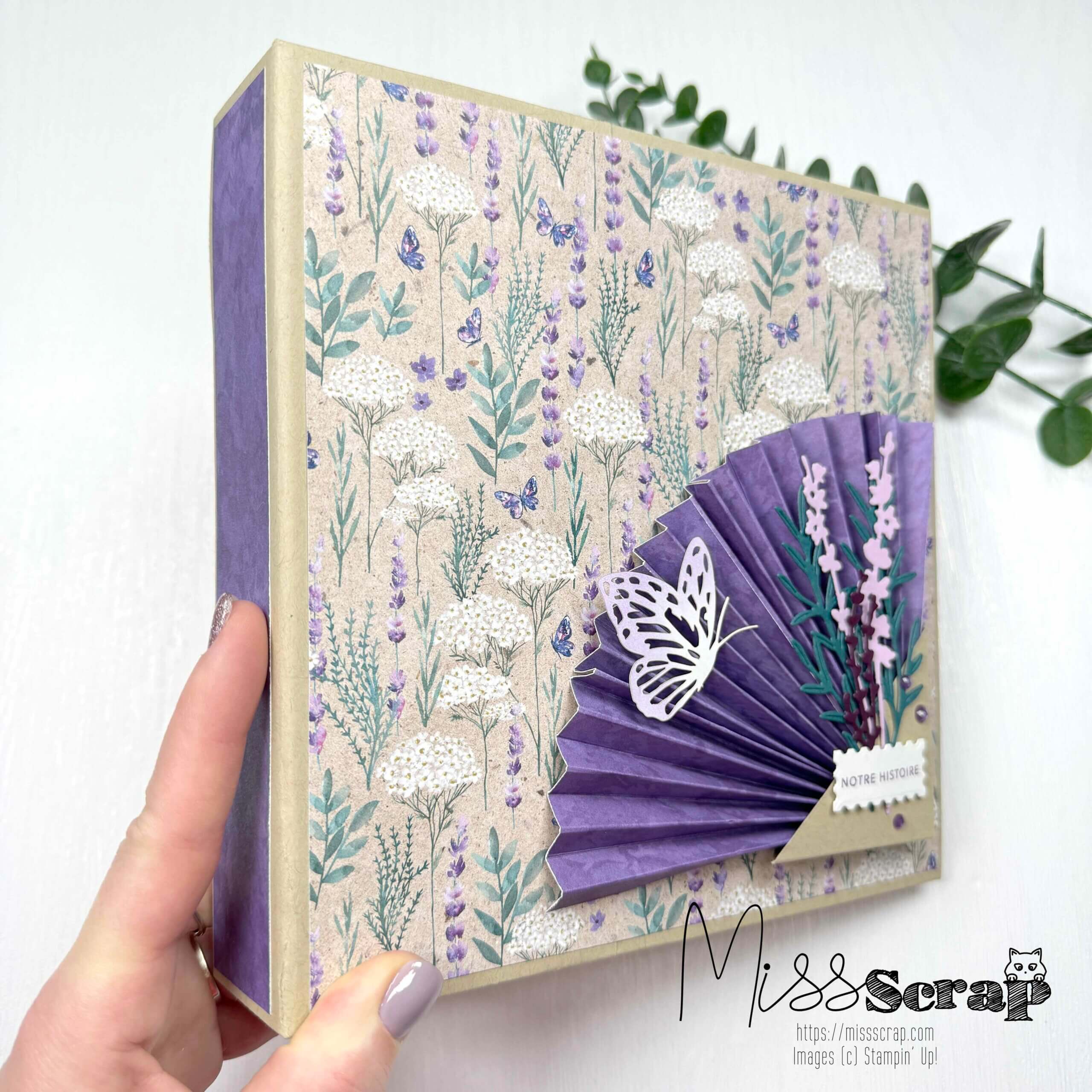 Il s’agit d’un album au format 20 x 20 cm, qui a été proposé en mars 2024, avec la collection “Lavande vivace” de chez Stampin’ Up!