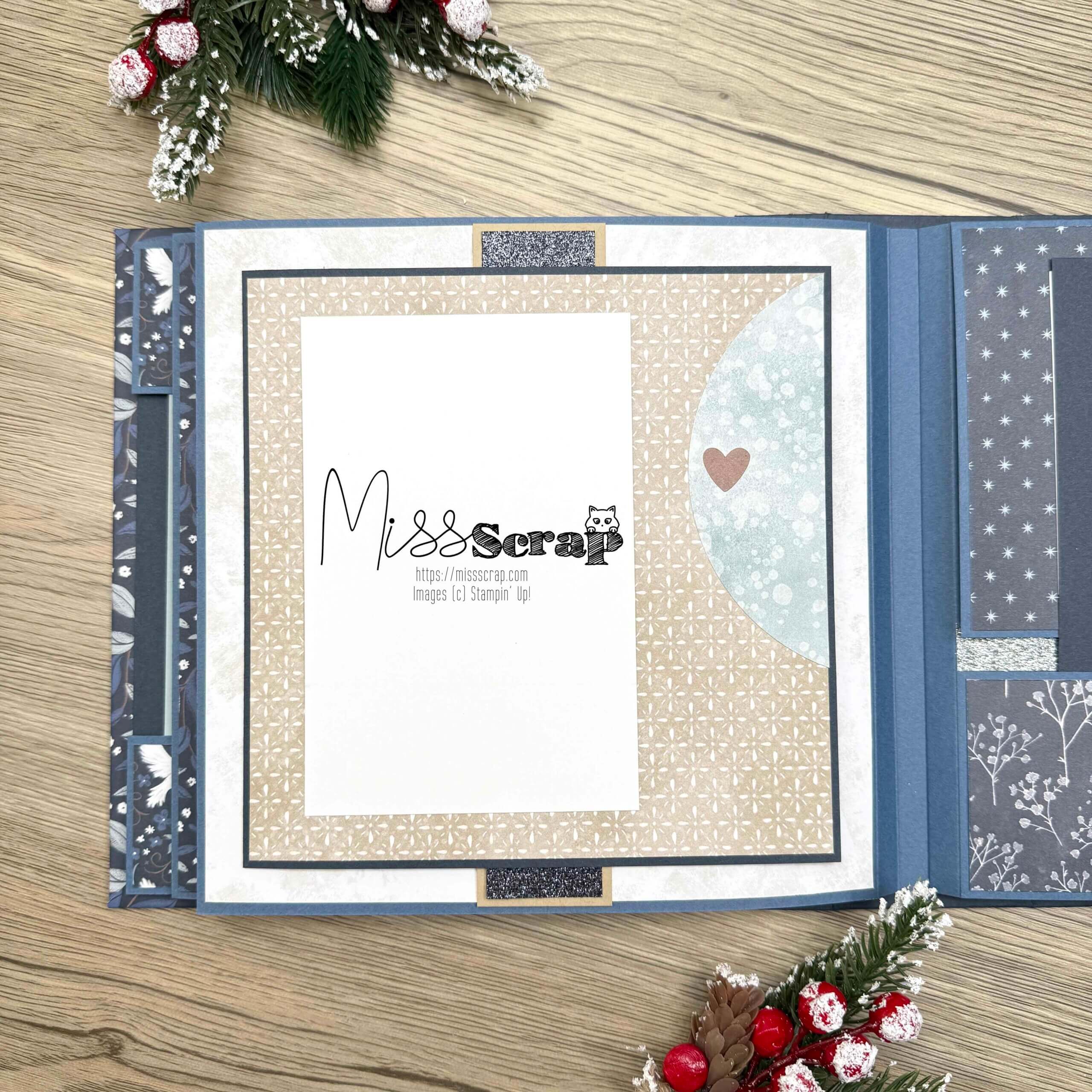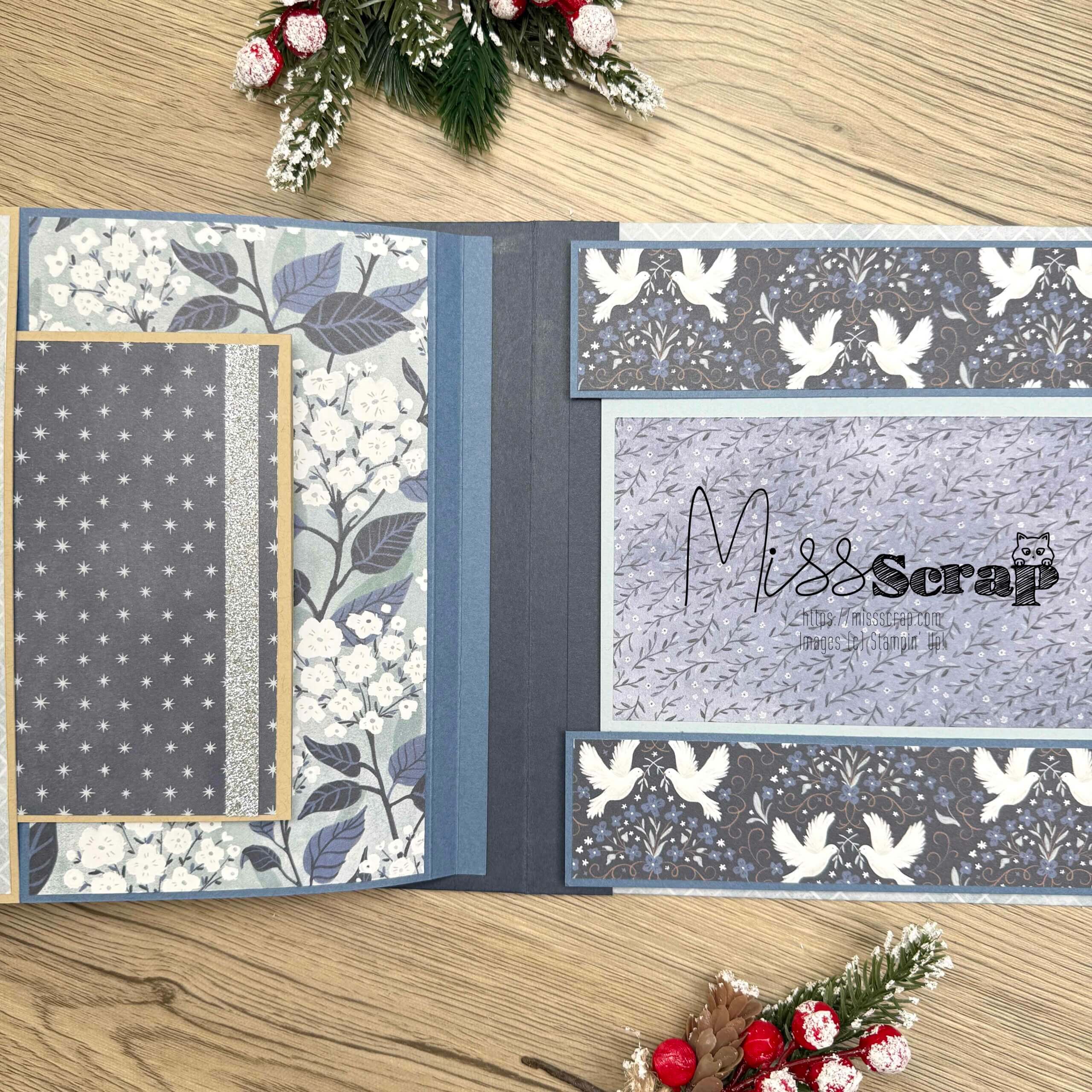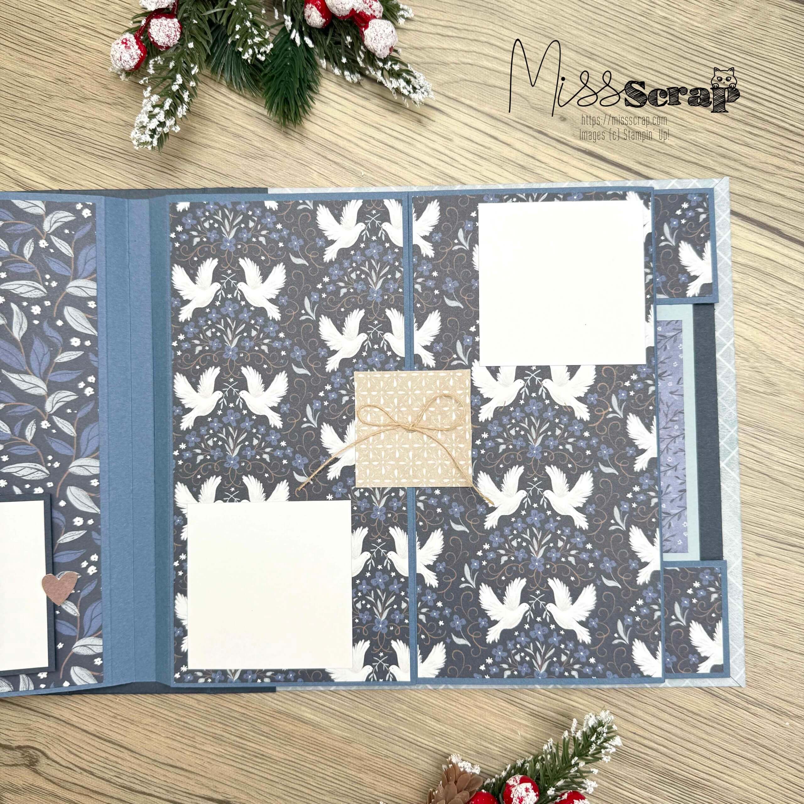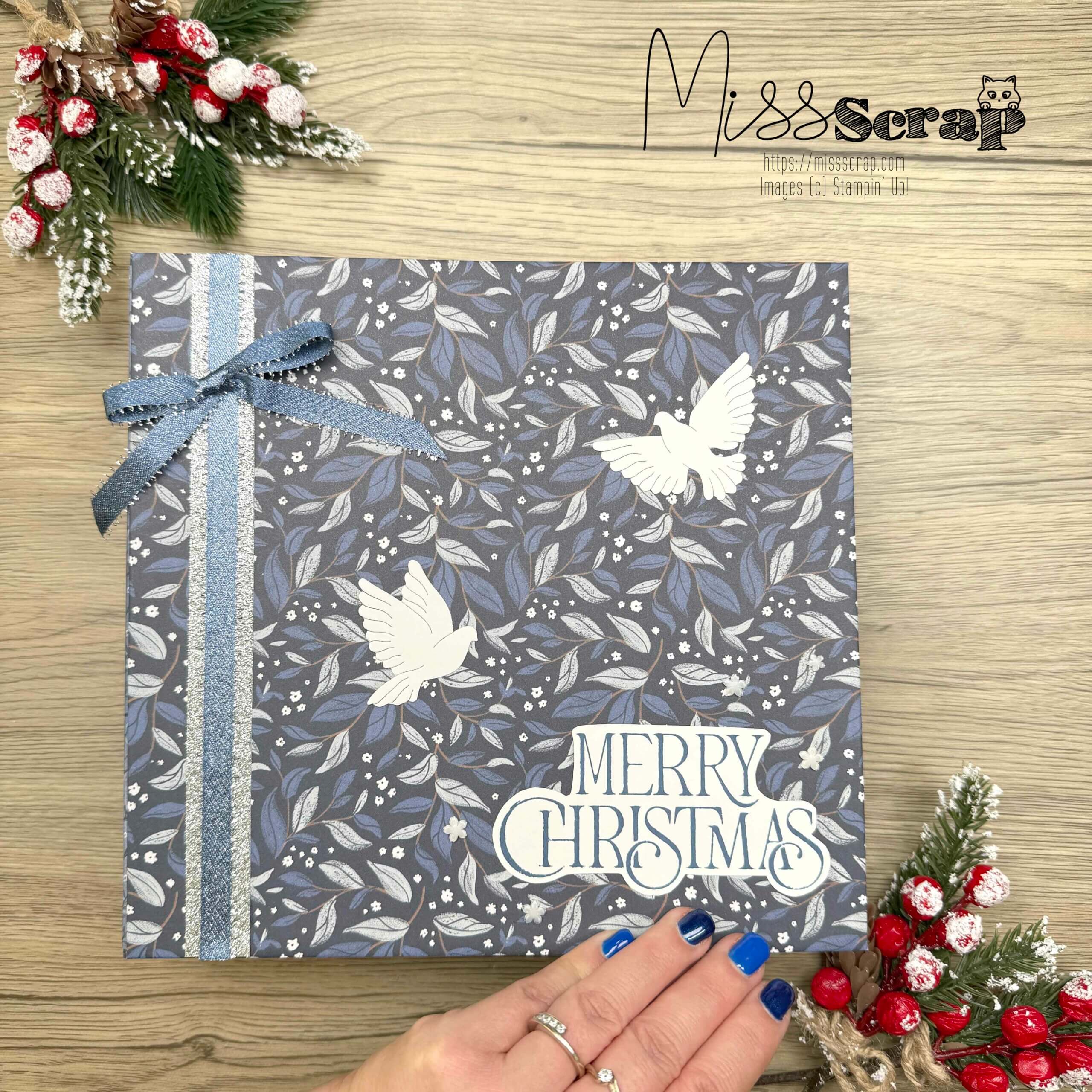 Il s’agit d’un album au format 23 x 22 cm, avec une épaisseur de 6 cm; qui a été proposé à l’automne 2025 avec la collection « Jardin Paisible » de chez Stampin’ Up! Il est sur le thème des fêtes de fin d’année mais peut être adapté à toutes les occasions.